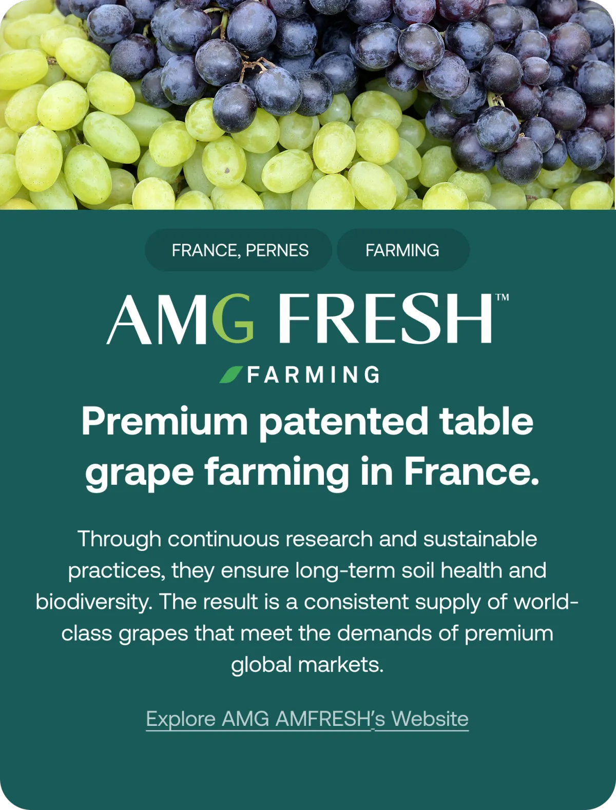 AMFRESH California specialises in premium seedless grapes, grown under the state’s ideal climate. Combining local farming heritage with innovation, it delivers fruit of exceptional taste and quality.
