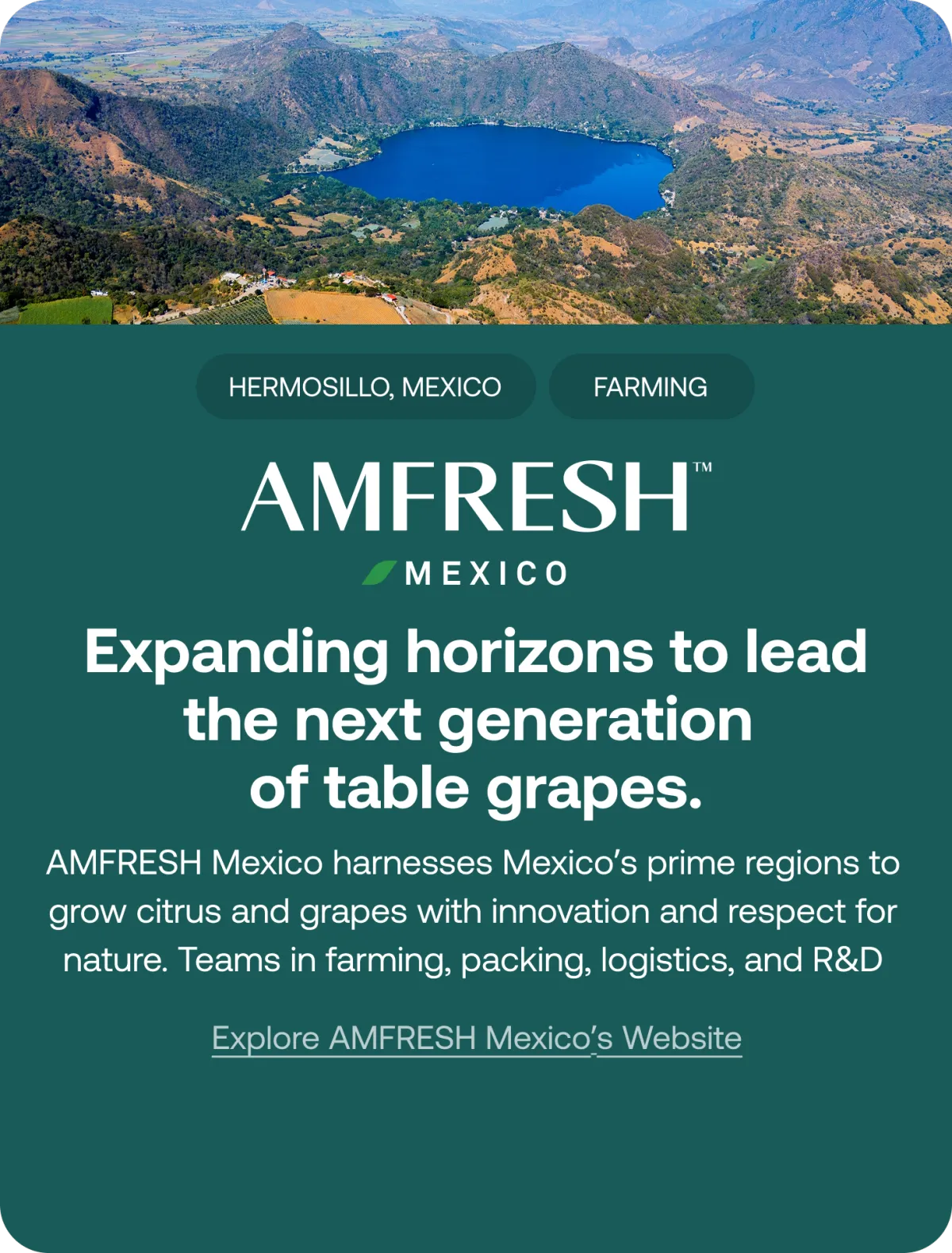AMFRESH Group is a global fresh food innovator operating in more than 60 countries. Its portfolio includes citrus, table grapes, tropical fruits, berries, plant-based fresh goods, and flowers.